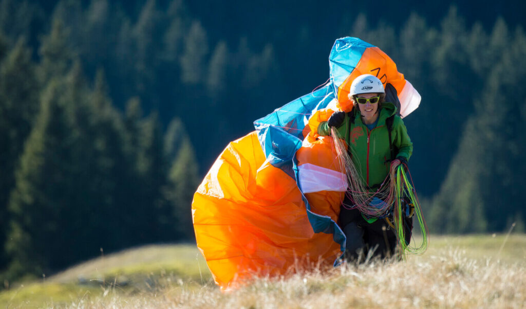 Vous allez apprendre à gonfler votre Parapente, à le piloter au sol, puis nous allons monter progressivement le long de la pente école afin de commencer à sentir la traction de la voile pour finir par effectuer de petits vols tout d’abord en ligne droite entre 20 ou 50 cm du sol.