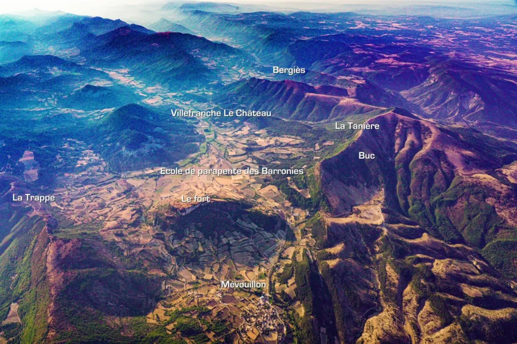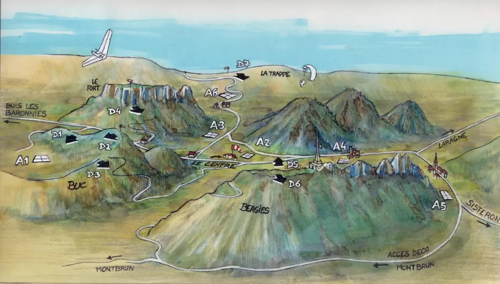 À moins de 20 minutes de l’école, 8 décollages différents et 3 pentes école vous permettront de voler quelle que soit la direction du vent.