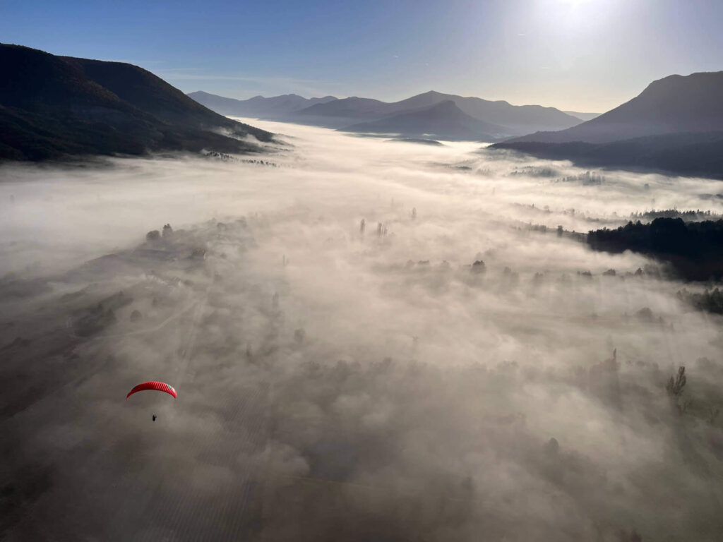 Le rendez-vous matinal sera parfois assez tôt afin de profiter d’une masse d’air calme. Et bien sûr si les conditions le permettent vous aurez le plaisir de profiter des très beaux vols du soir sur Mévouillon.
